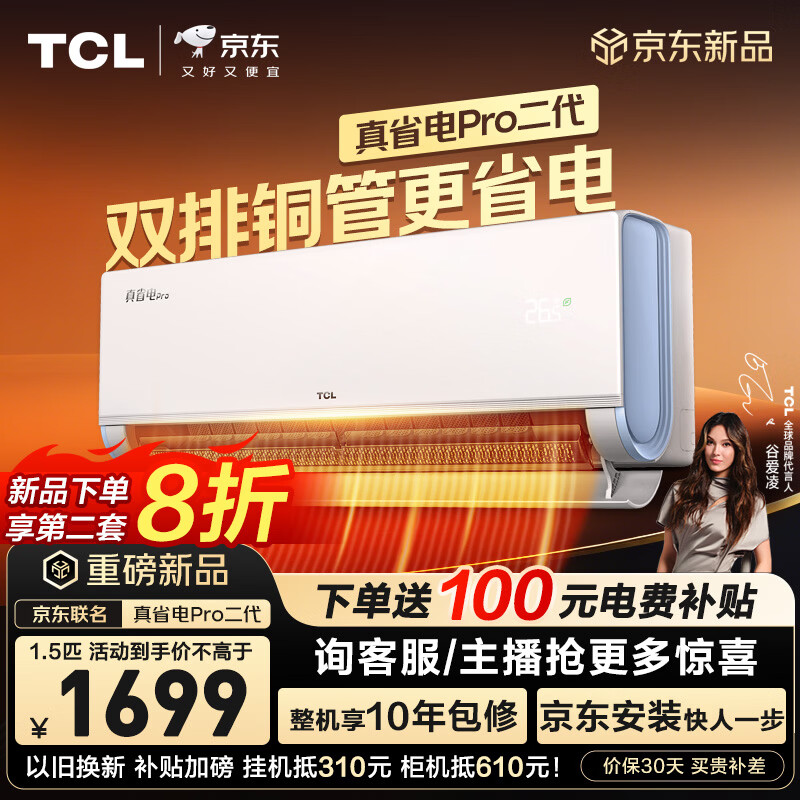 自营TCL空调新品京东联名真省电Pro二代大1.5匹新一级能效变频双排铜管壁挂式冷暖KFR-35GW/RT2Eb+B1