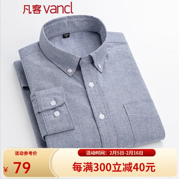 旗舰店凡客诚品(VANCL)凡客vancl长袖衬衫男全棉领尖扣牛津纺商务休闲经典舒适衬衫 灰色 2XL