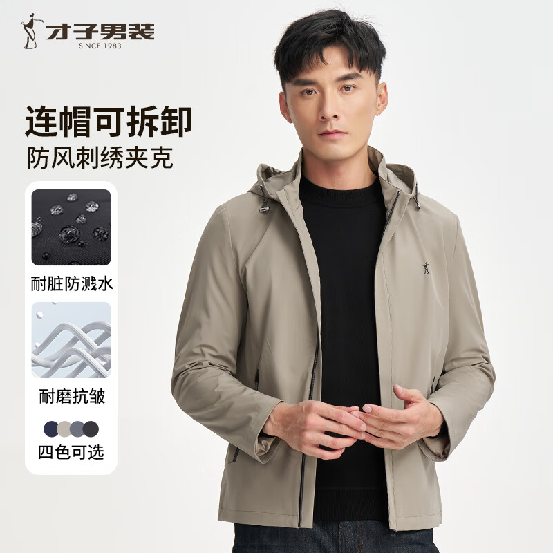 旗舰店才子(TRIES)夹克外套男士商务行政连帽夹克品牌LOGO纯色户外上衣百搭通勤外套 卡其色 XL (175/92A)