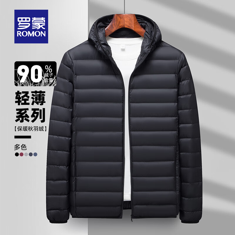 旗舰店罗蒙短款羽绒服男士轻薄款休闲外套秋季新款中青年易穿搭羽绒外套 黑色【连帽】 M (170)