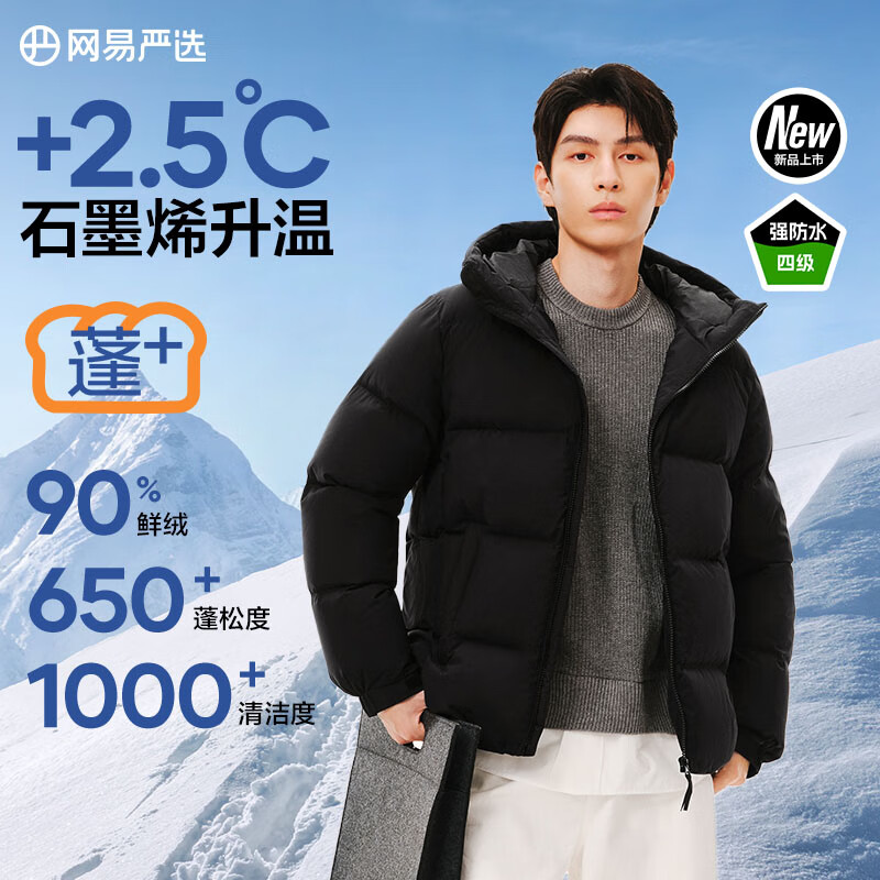 百亿补贴网易严选25新品90鸭绒超蓬羽绒服休闲面包服石墨烯保暖轻量抗菌防泼水 A款25迭代-静谧黑(立领) L