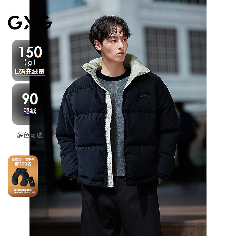 旗舰店GXG男装 休闲男士简约宽松鸭绒保暖立领羽绒服男外套 秋冬新品 黑色 M