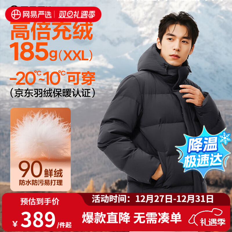 旗舰店网易严选新品90鲜绒轻商务面包服连帽羽绒服男通勤-20℃抗寒无氟防水防污 A款25秋冬-连帽-砾石灰 M (170/92A)