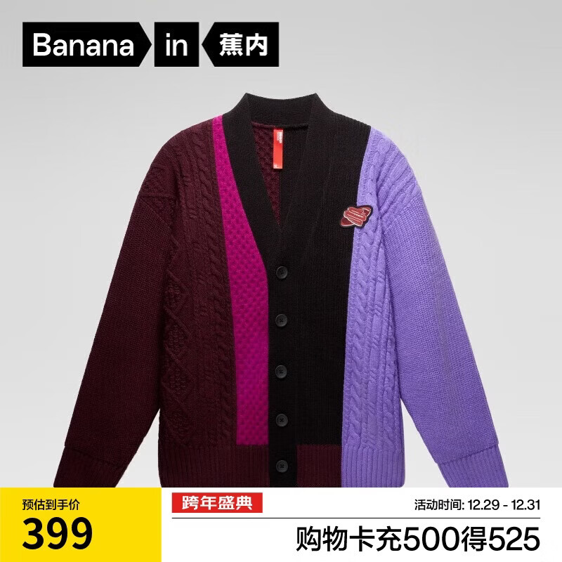 自营蕉内红色计划520C男女同款套头毛衣开衫针织衫羊毛拼接圆领蛇年冬季