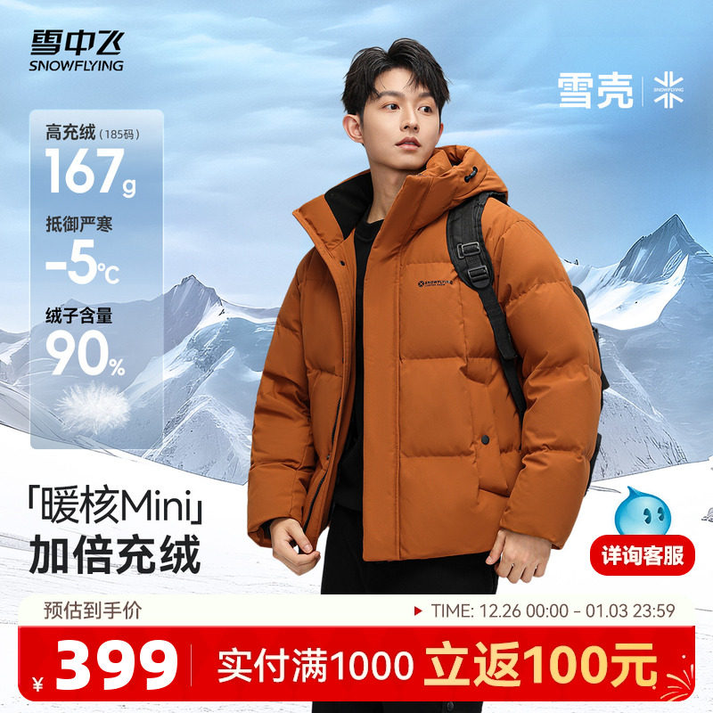 旗舰店【雪壳系列】雪中飞25冬新款羽绒服男休闲短运动连帽90绒面包服S