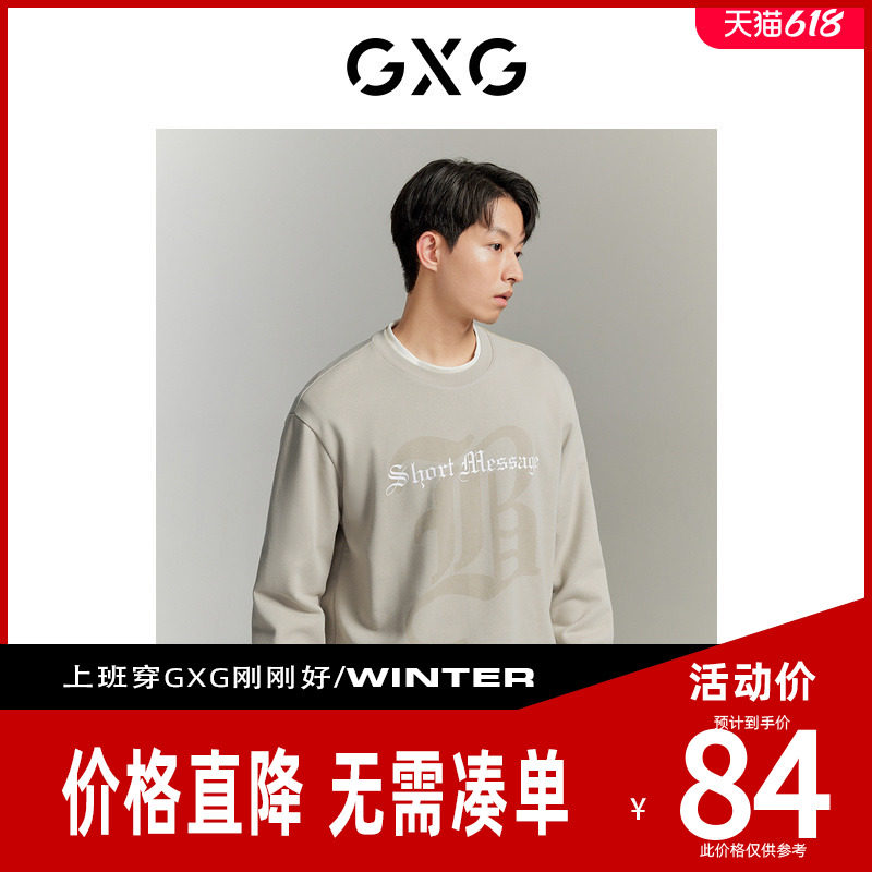 【新款】GXG男装 秋季新品时尚休闲印花宽松圆领卫衣情侣卫衣