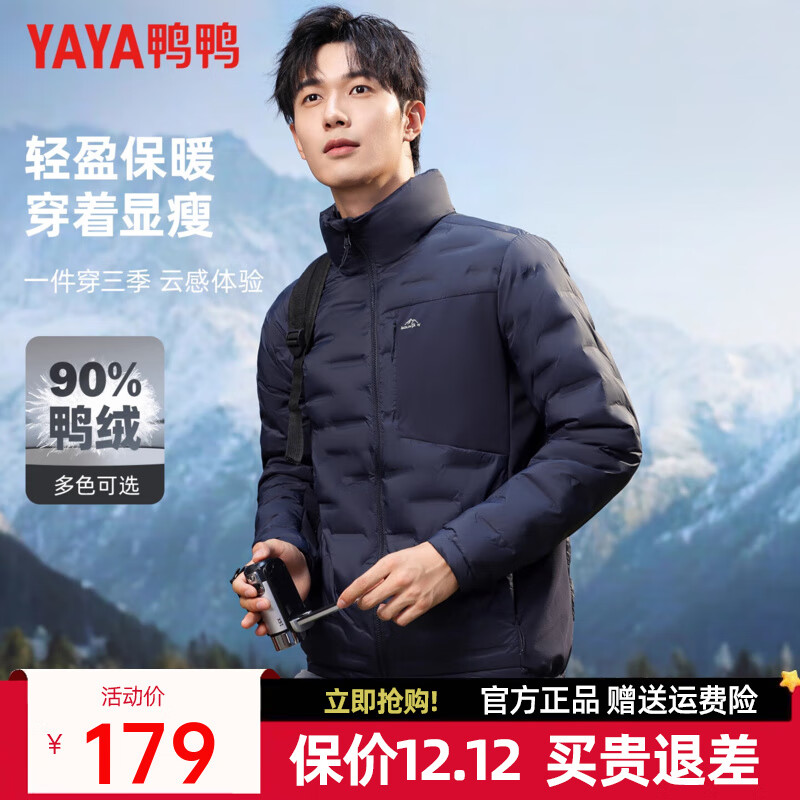 旗舰店鸭鸭(YAYA)2025年新款时尚男士羽绒服轻薄立领百搭保暖防风潮流秋冬外套K 藏蓝色 L 175/92A