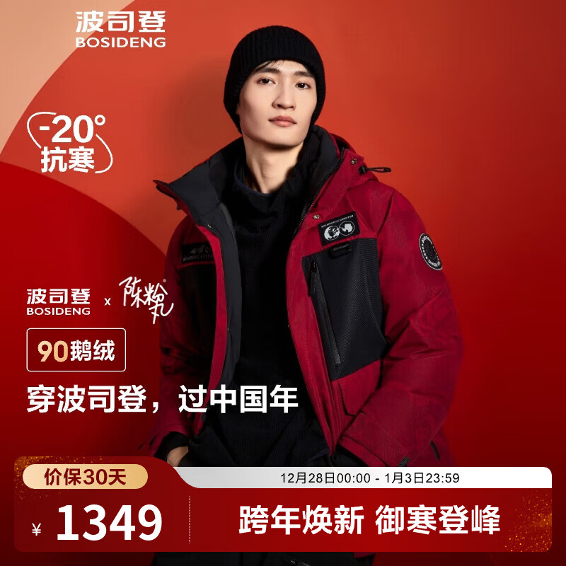 旗舰店波司登(BOSIDENG)【断码清仓】极寒90鹅绒羽绒服情侣款短款连帽保暖时尚工装厚外套 红运当头9BW5 L 170/92A