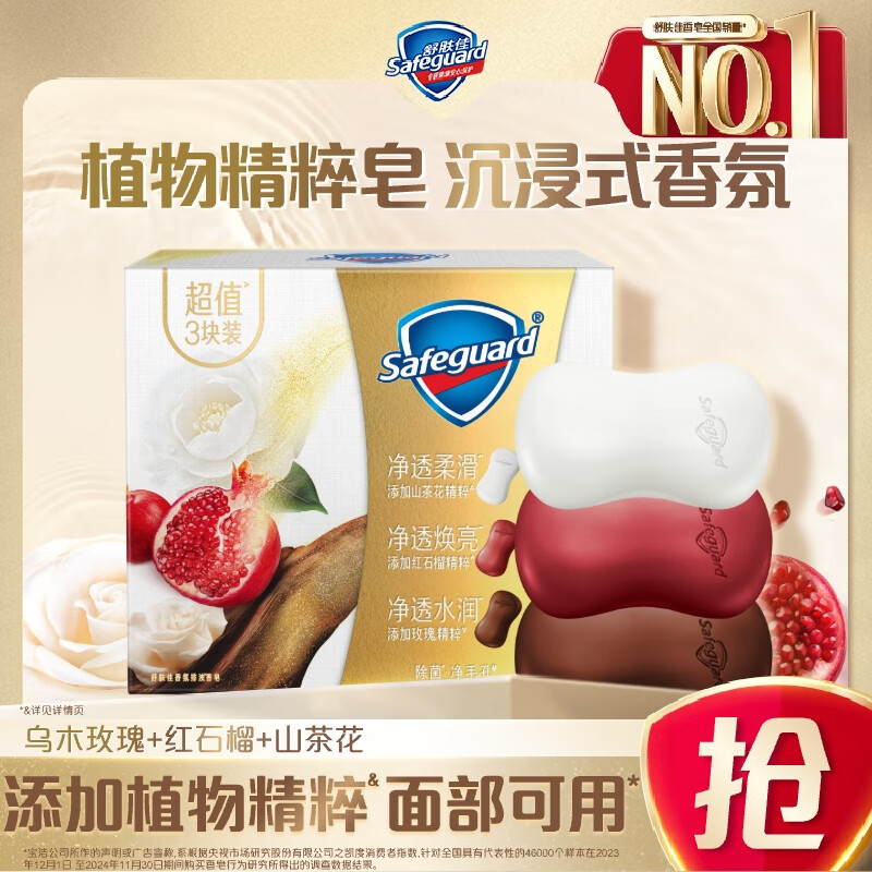 自营舒肤佳排浊香皂全新加量装150g*3(红石榴+山茶花+乌木玫瑰)肥皂洗澡洁面