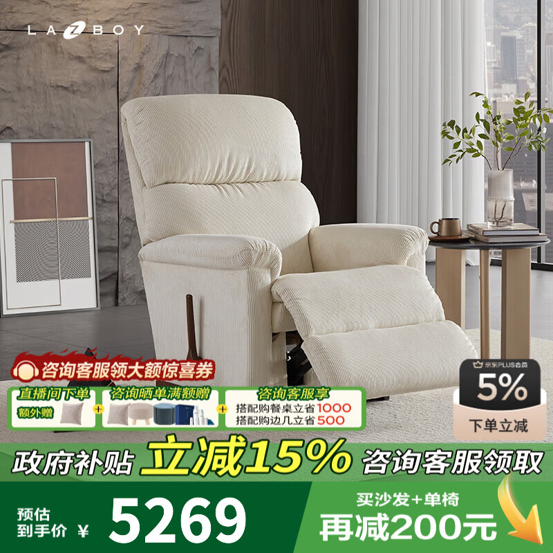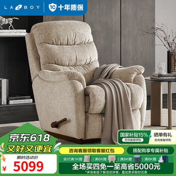 旗舰店乐至宝LAZBOY布艺沙发客厅美式单人懒人可躺摇摇椅功能进口繁星510F 象牙白-常规款【7天发】