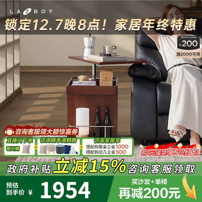 旗舰店乐至宝LAZBOY客厅边几可移动沙发边桌床头边柜小推车茶几置物拾光几602 边几680x420x690mm-30天发