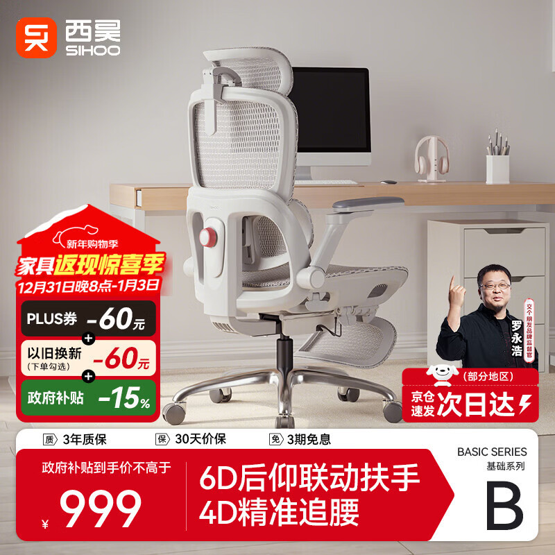 自营西昊B100Pro 人体工学椅办公椅电脑椅人工力学座椅久坐电竞椅国家补贴