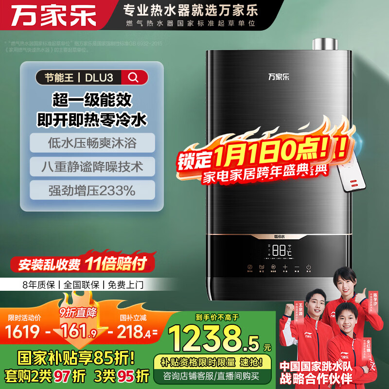 自营万家乐燃气热水器【节能王DLU3·增压零冷水】16升天然气恒温一级能效五重净浴无线魔盒分控以旧换新