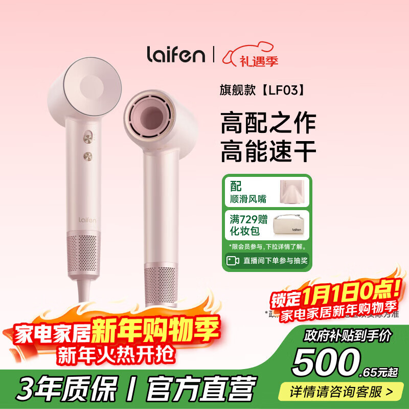 自营徕芬Laifen高速吹风机 速干家用电吹风 负离子护发大功率风筒 新年礼物送女友 国家补贴 LF03金粉