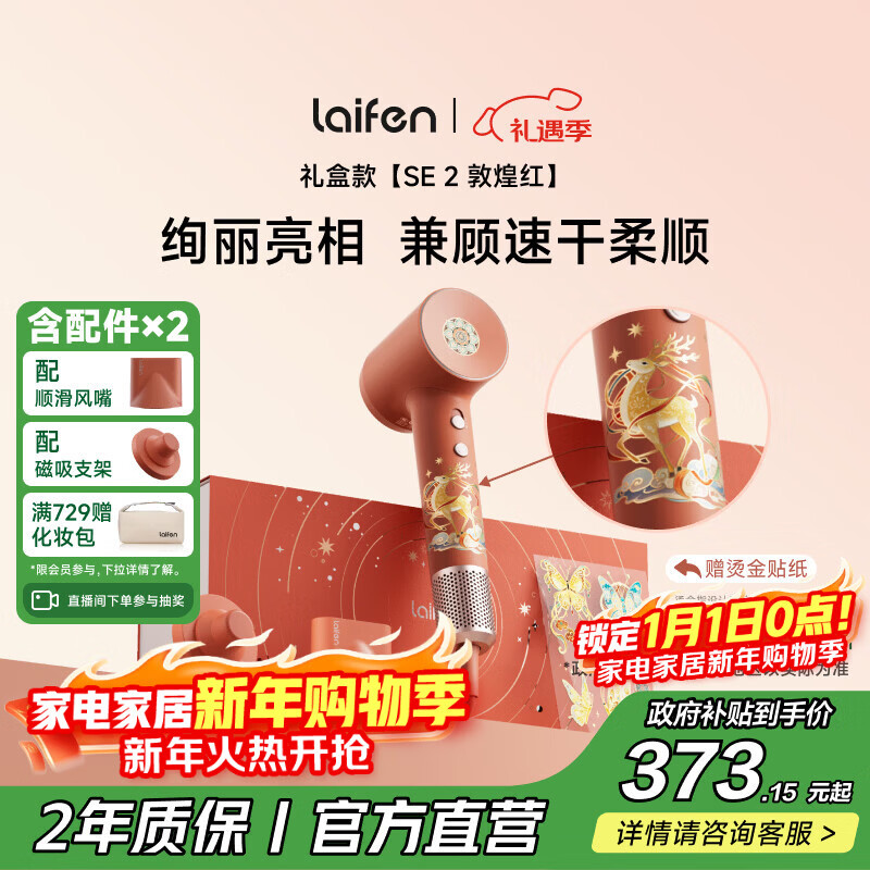 自营徕芬高速吹风机 SE 2 敦煌红礼盒 速干家用电吹风 负离子护发吹风筒 新年礼物 国家补贴