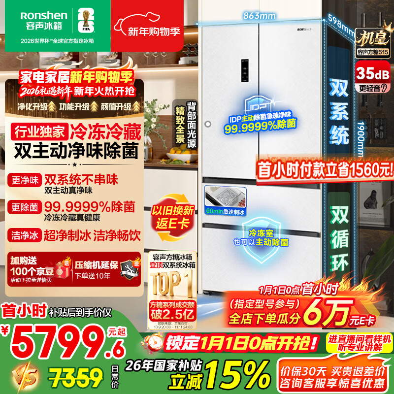 自营容声方糖515L机皇法式多门冰箱双系统超薄零嵌入式自动制冰一级能效白BCD-515P60FZNAD国家补贴世界杯