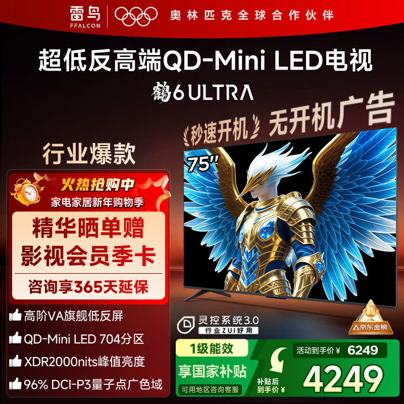 自营FFALCON雷鸟电视 75鹤6 Ultra 25款(PLUS版) 75英寸 QD-MiniLED 高阶VA 家电国家补贴电视75S595C Ultra