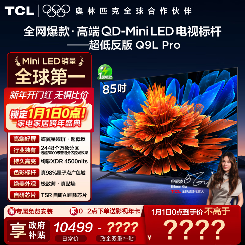 旗舰店TCL电视 85Q9L Pro 85英寸 QD-Mini LED 蝶翼星曜屏 万象分区 绚彩XDR 4500nits 超薄 电视机 低反屏 85英寸