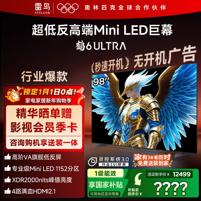 自营FFALCON雷鸟电视 85鹤6 Ultra 25款(PLUS版) 85英寸 QD-MiniLED 高阶VA 家电国家补贴电视85S595C Ultra