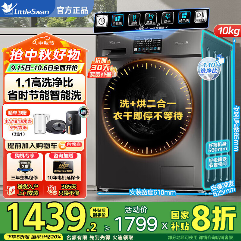 旗舰店小天鹅(LittleSwan)滚筒洗衣机全自动家用变频洗脱/洗烘一体10/12公斤大容量1.1高洗净比除菌净螨羽绒服洗智能 【高性价比V23PRO洗烘】1.1洗净比+节能洗