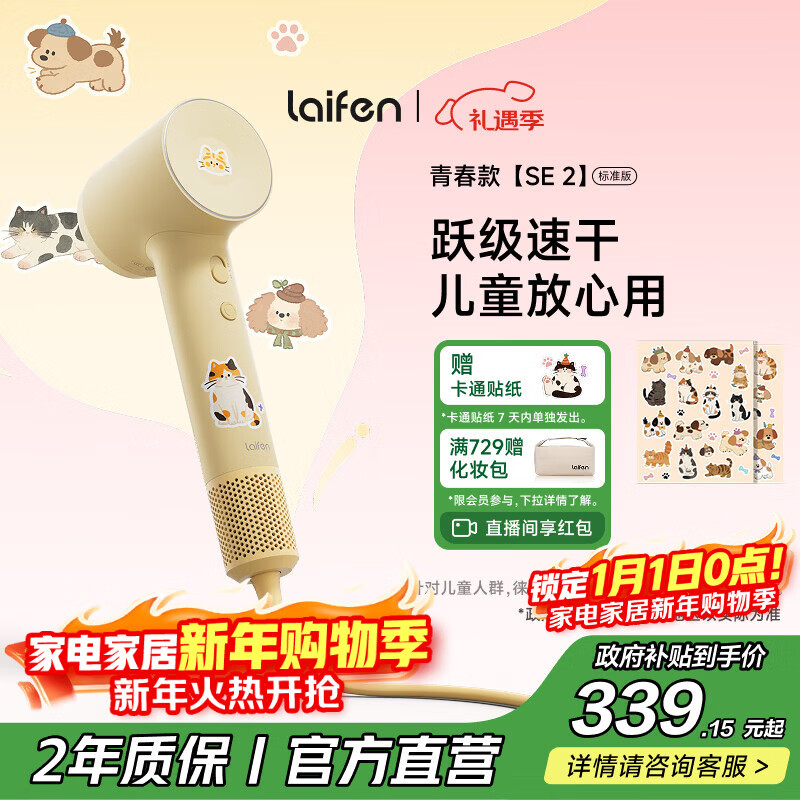 百亿补贴徕芬Laifen SE Lite 家用入门款高速吹风机 莱芬大风力速干低噪学生宿舍便携风筒 礼物推荐 国家补贴 SE lite奶茶色