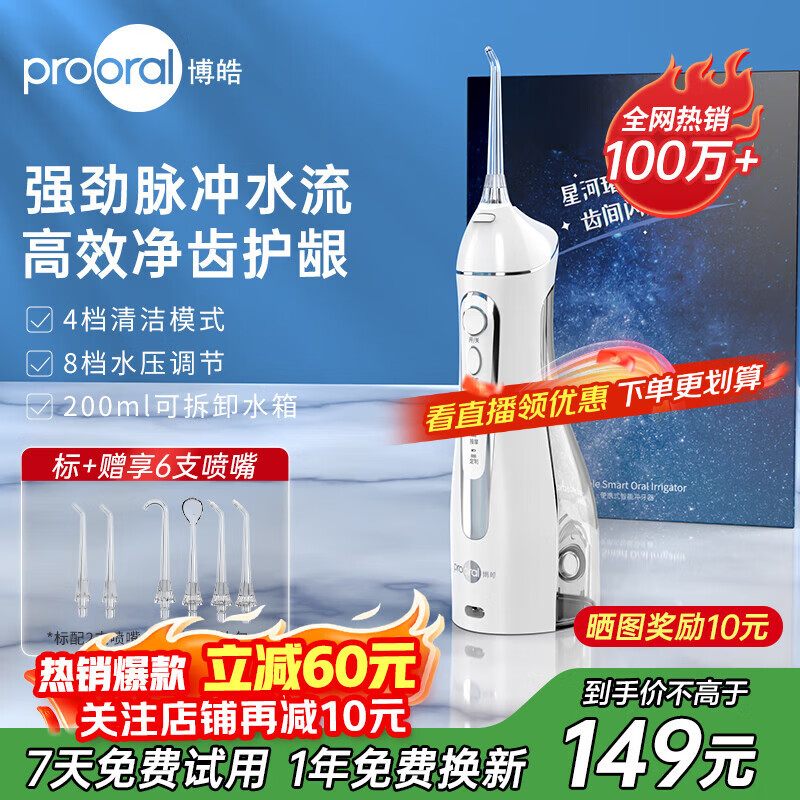 旗舰店博皓(prooral)冲牙器便携家用洗牙器冲洗器水牙线正畸专用电动洁牙器牙垢去除器 送朋友父母礼物 5025 白色
