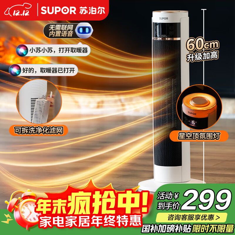 自营苏泊尔(SUPOR)【语音控制】石墨烯暖风机/取暖器/电暖器/电暖气片/电热扇 家用加高塔式轻音节能热风机PC223A-20