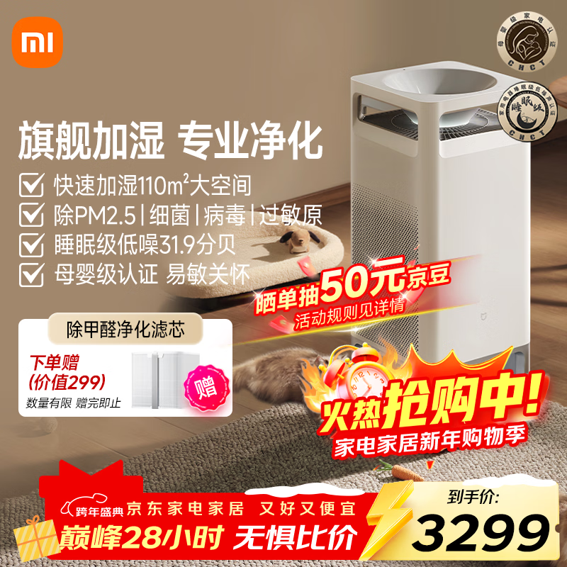 自营米家小米母婴级无雾加湿净化一体机3Max 除菌除过敏原家用卧室大容量加湿器空气净化器