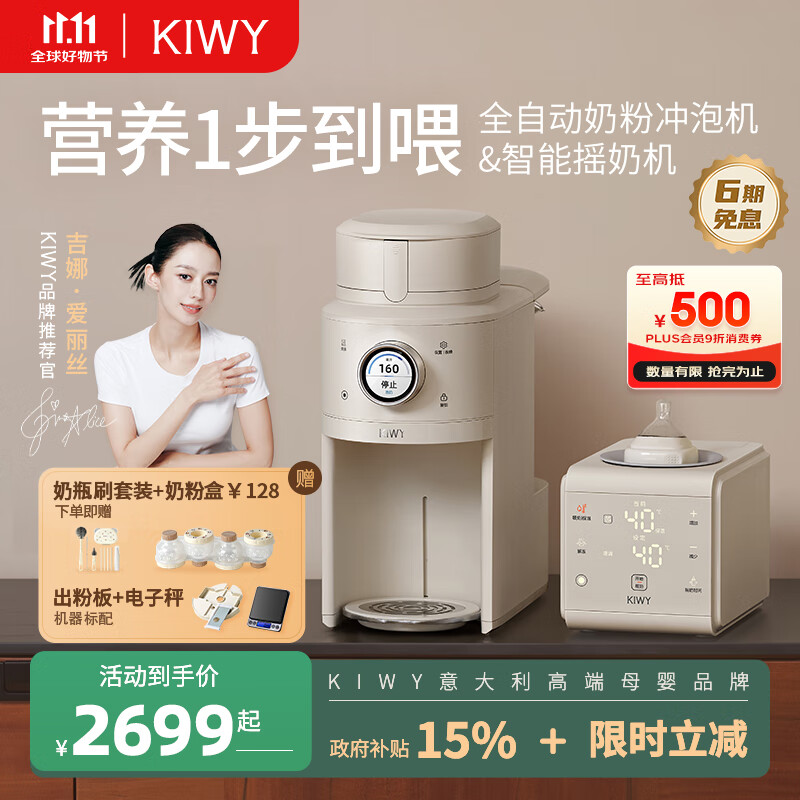 旗舰店kiwy母婴智能自动泡奶机婴儿调奶机一键泡奶粉冲泡机冲奶机摇奶机 【两件套】全自动智能泡奶机+自动夹紧摇奶器 1.5L