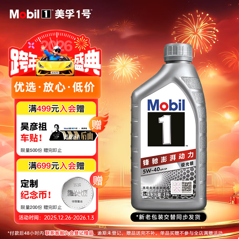 自营美孚(Mobil)美孚1号极光银美孚 先进全合成汽机油5W-40 SP级4L 新老包装发货