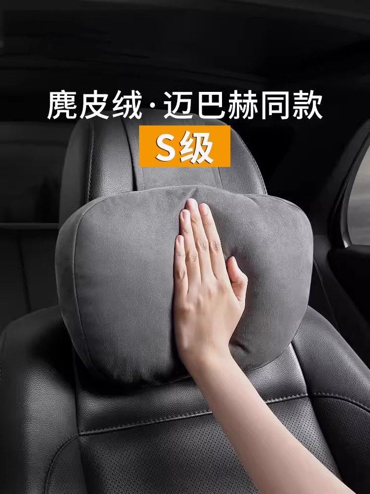 轻奢迈巴赫S级同款汽车头枕通用车内豪华靠枕柔软颈枕麂皮绒腰靠