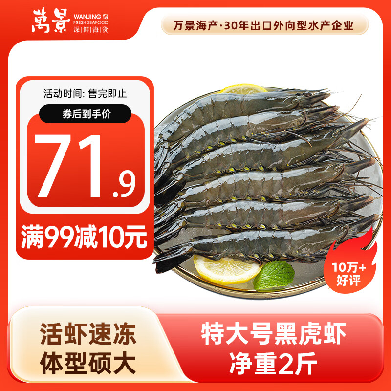 自营万景 北海活冻巨无霸黑虎虾单冻 净重2斤/盒 20-30只 国产虾 家庭聚餐