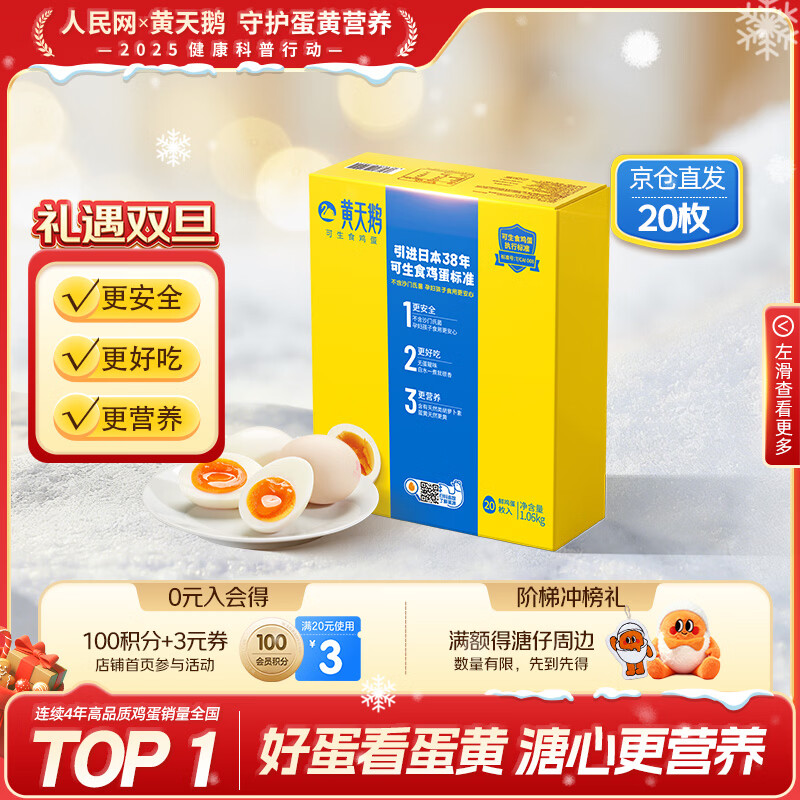 自营黄天鹅可生食鸡蛋 20枚/2.12斤礼盒装 生鲜鸡蛋京东自营 无抗生素