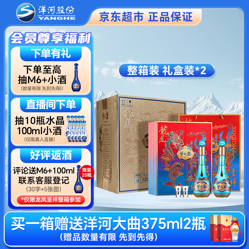 自营洋河 梦之蓝 龙凤呈祥 52度550ml*2*2 整箱装 礼盒装*2