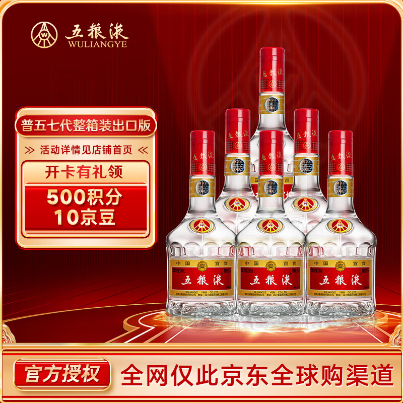 自营五粮液 普五 第七代 浓香型白酒 52度 500ml*6瓶 原箱 出口版 官方授权