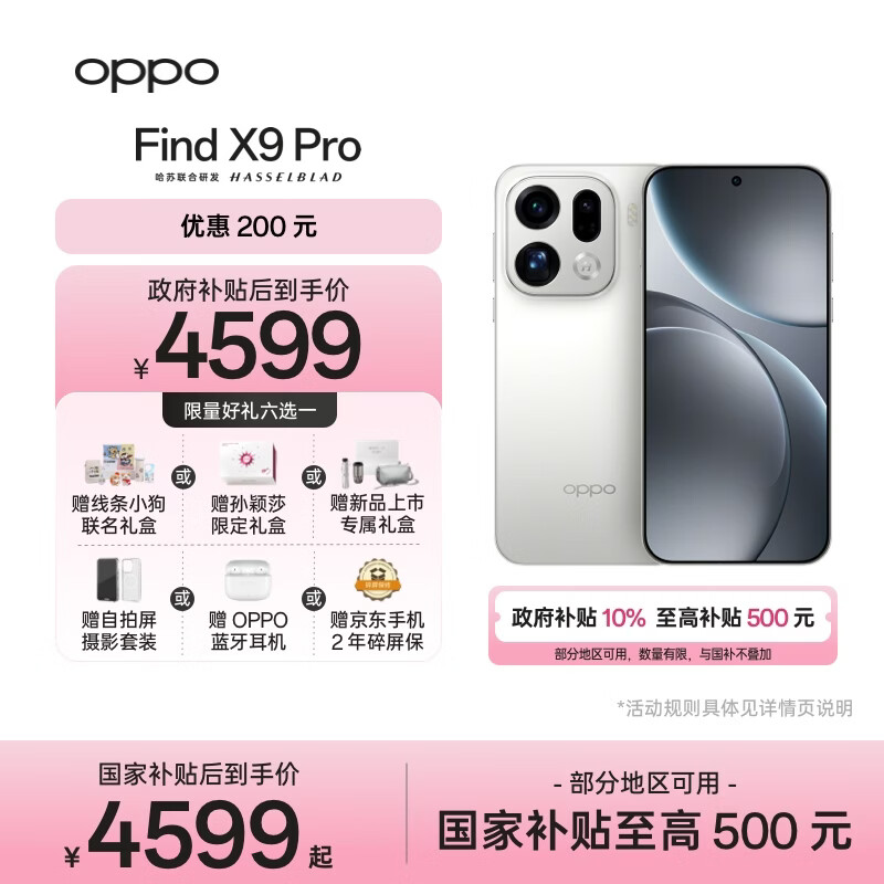 自营OPPO Find X9 Pro 12GB+256GB 霜白 哈苏2亿长焦镜头 拍照 旗舰 智能手机 国家补贴【孙颖莎同款】