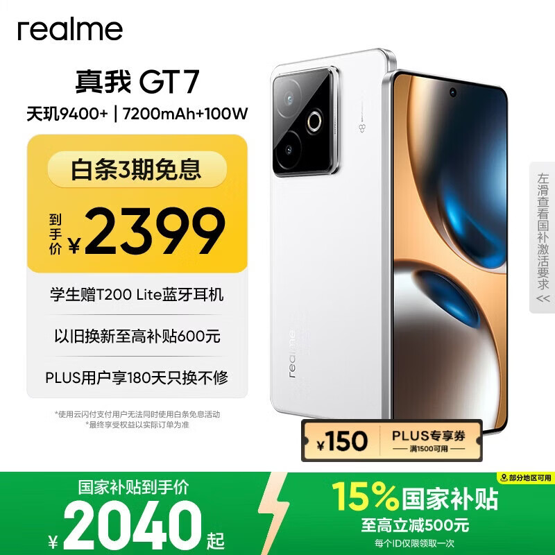 自营realme【国家补贴】真我GT7 天玑9400+ 轻薄大电池快充长续航 超声波3D指纹 电竞AI游戏5G手机 12+256白