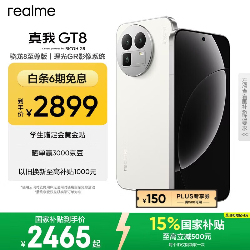 自营realme真我GT8 Pro 第五代骁龙8至尊版 电竞独显芯片 2K 144Hz高刷直屏 2亿潜望 游戏电竞手机12+256白