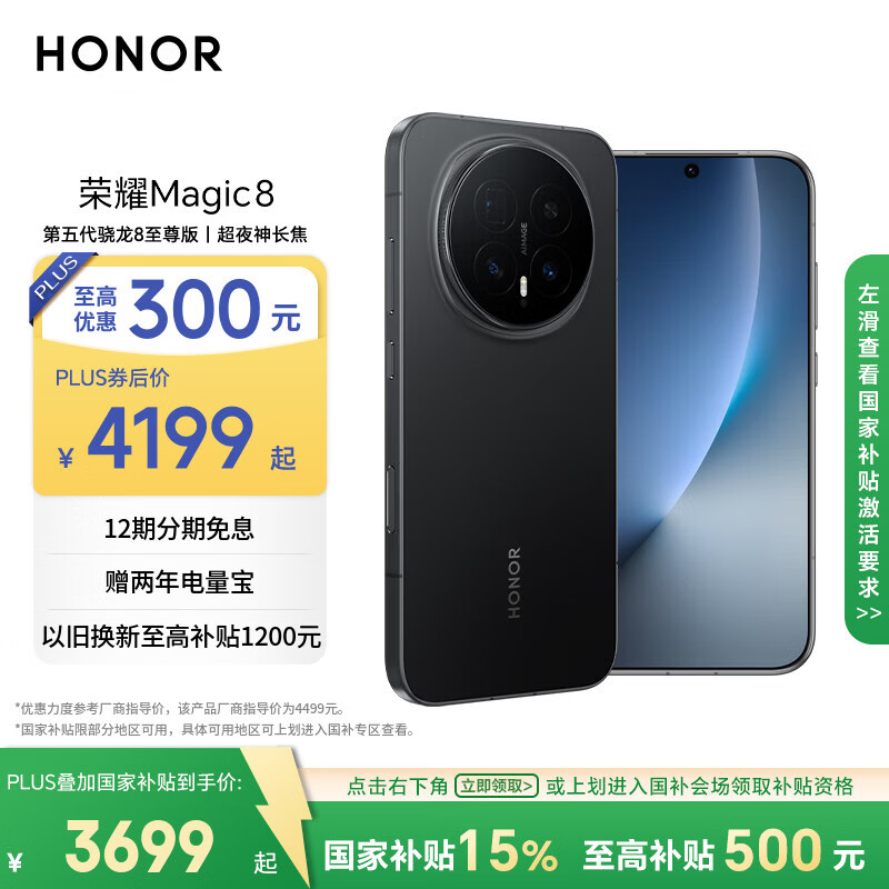 自营荣耀Magic8 12+256 绒黑色 第五代骁龙8至尊版 超夜神长焦 新一代青海湖电池 谢霆锋同款 5G AI手机