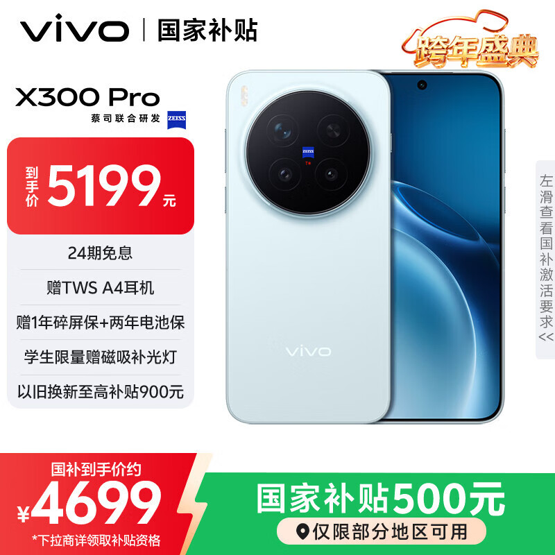自营vivo X300 Pro 12GB+256GB 自在蓝 蔡司2亿APO超级长焦 蓝图影像双芯 5年持久流畅OriginOS 6 AI手机