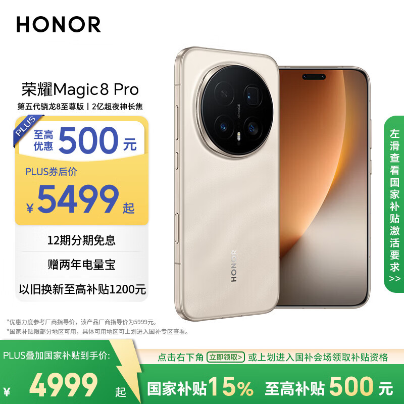 自营荣耀Magic8 Pro 12+512 旭日金砂 第五代骁龙8至尊版 2亿超夜神长焦 双3D解锁 谢霆锋同款 5G AI手机