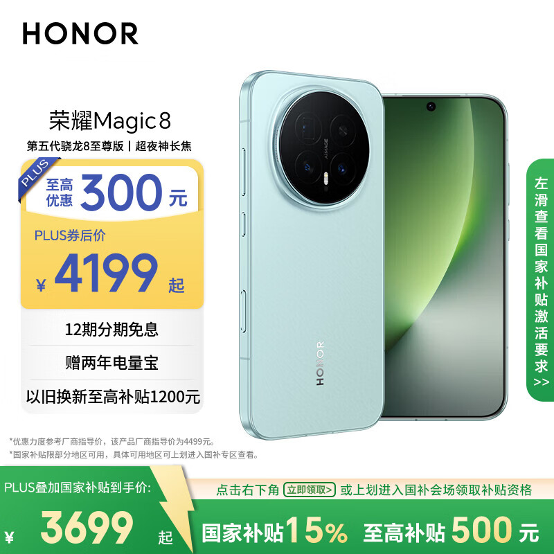 自营荣耀Magic8 12+256 天青釉 第五代骁龙8至尊版 超夜神长焦 新一代青海湖电池 谢霆锋同款 5G AI手机