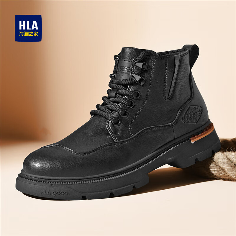旗舰店海澜之家(HLA)男鞋马丁靴男厚底男士靴子高帮鞋工装靴男 黑色 42