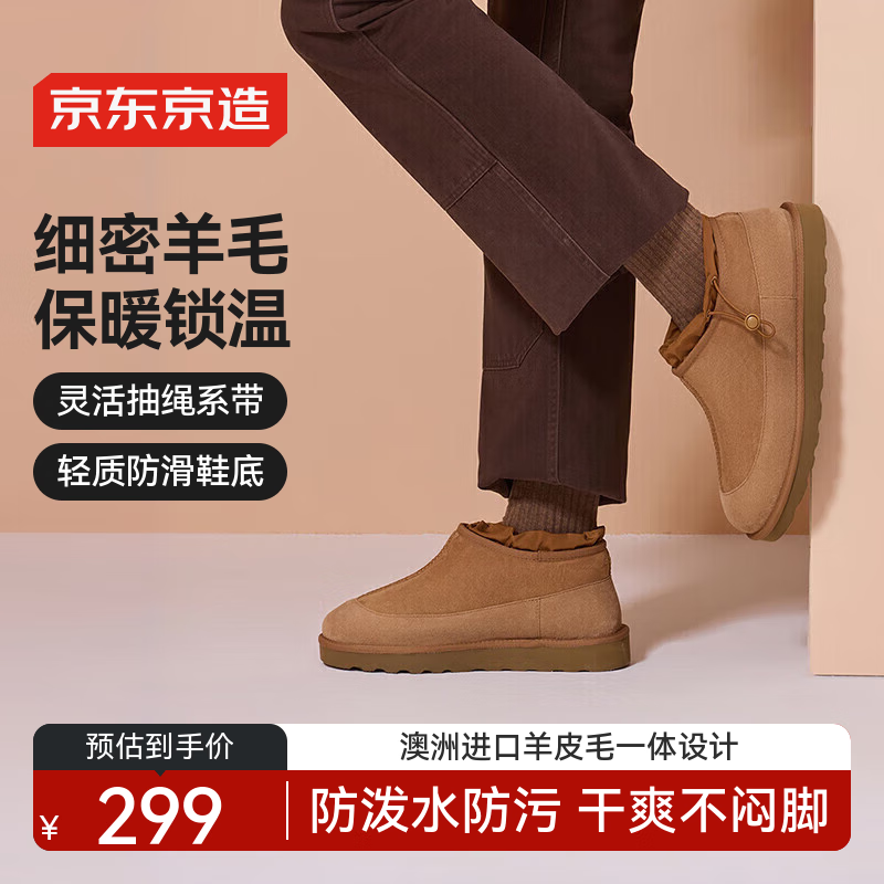 自营京东京造【中筒经典】雪地靴女冬季羊皮毛一体保暖防寒短靴驼色38