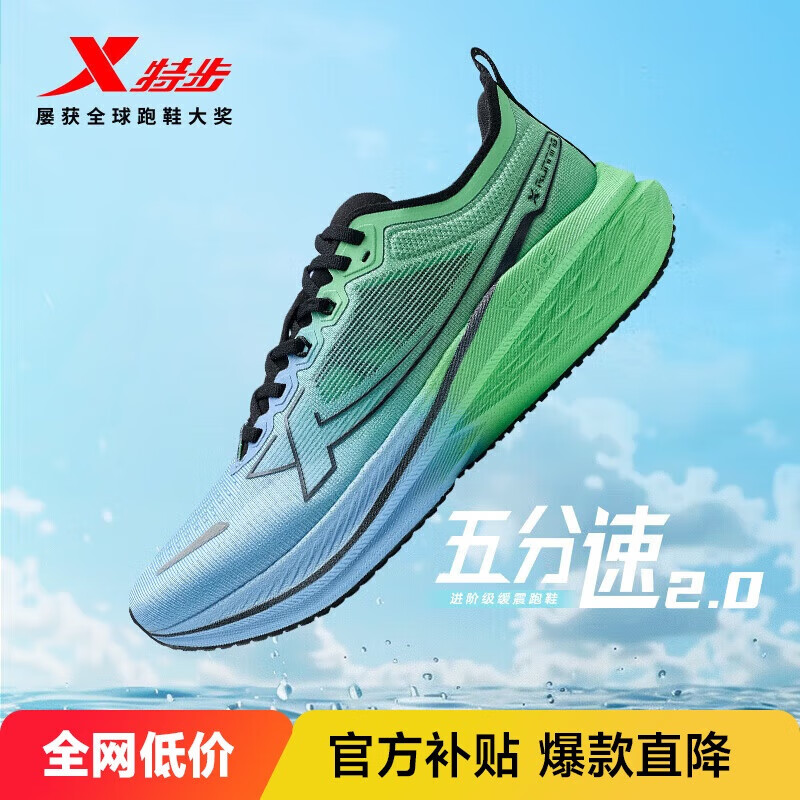 自营特步男鞋五分速2.0鞋子男户外竞训跑步运动休闲鞋子男