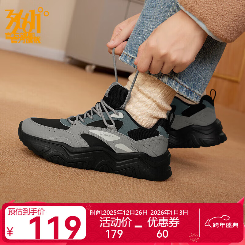 旗舰店361°雪糕 休闲运动鞋 秋冬新款革面复古厚底老爹鞋 轻便百搭女生鞋子 曜石黑/锌铁灰 37