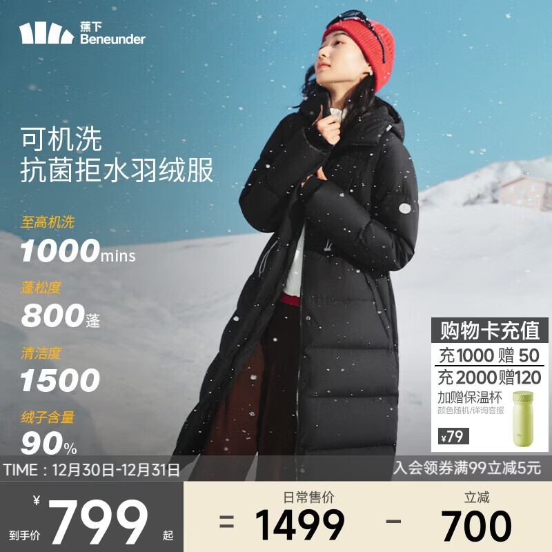 百亿补贴雪中飞【鹅绒】羽绒服女士大长款连帽2025冬爆款修身防寒保暖外套 黑色|8056 M 165/88A