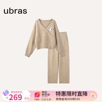 旗舰店ubras【陈都灵同款】咩绒绒V领家居服加绒睡衣冬季女套装舒适 经典灰褐色 L