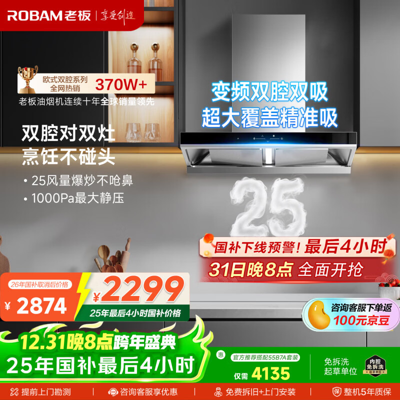 自营老板[25风量双子星]吸排抽油烟机家用欧式大吸力一级能效以旧换新上门安装国家补贴65D3S可搭燃气灶