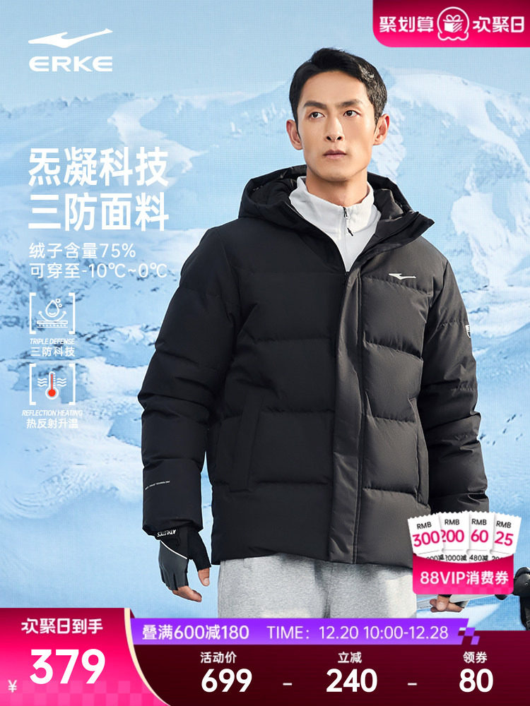 炁凝科技丨鸿星尔克羽绒服男冬季新款男士冬装三防外套爸爸男装